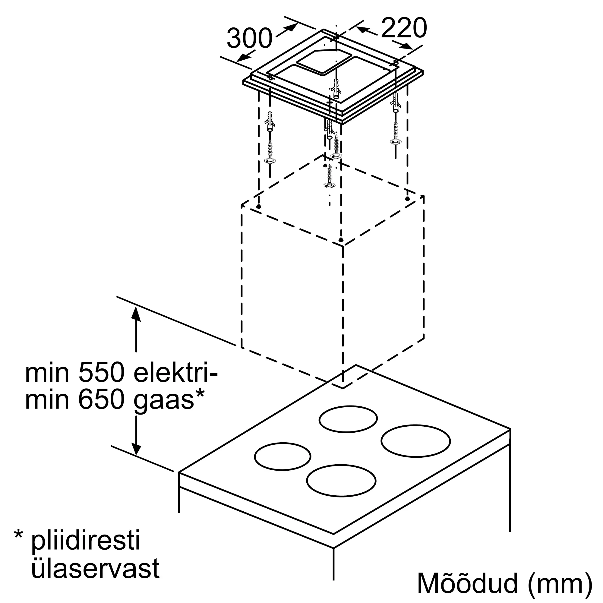 Õhupuhasti juhtimine pliidiplaadilt